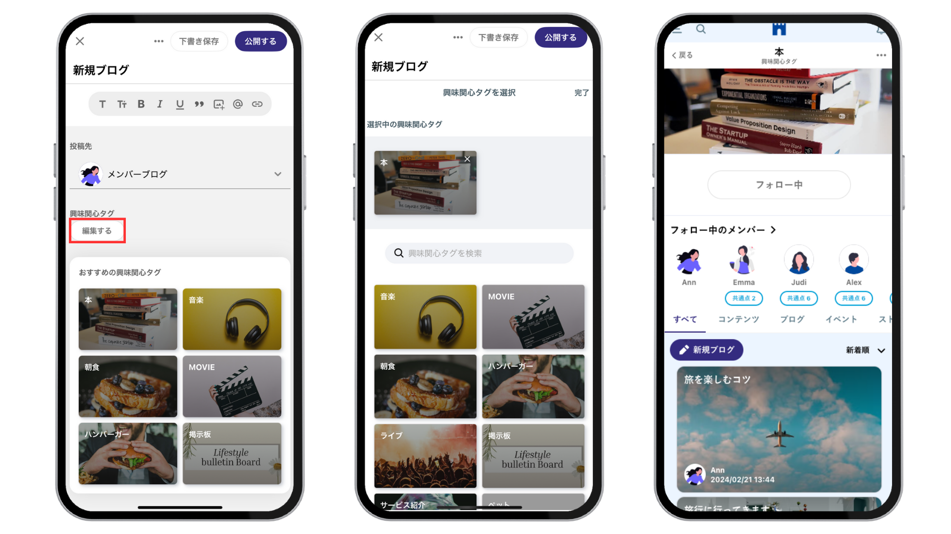 ブログやイベントに興味関心タグをつけ、タグごとに投稿を絞り込むことができます。