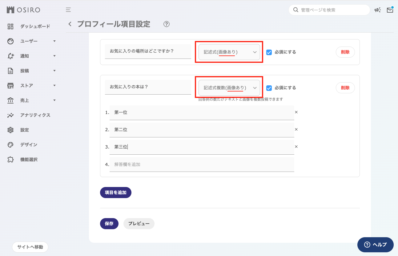 プロフィール項目に下記の新たな回答種類が追加されます。