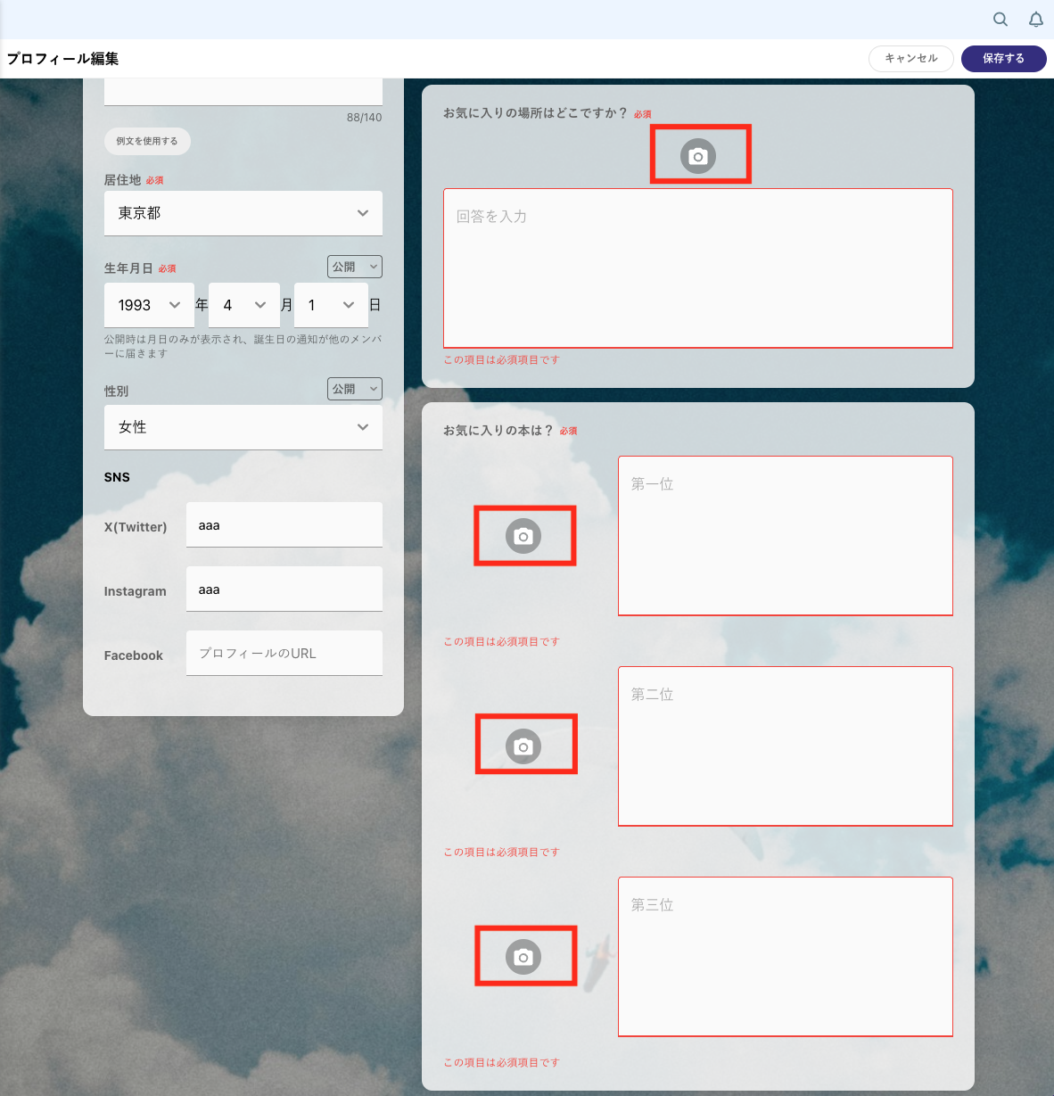 これらを設定するとユーザーはプロフィール項目の回答に画像を添付することができます。