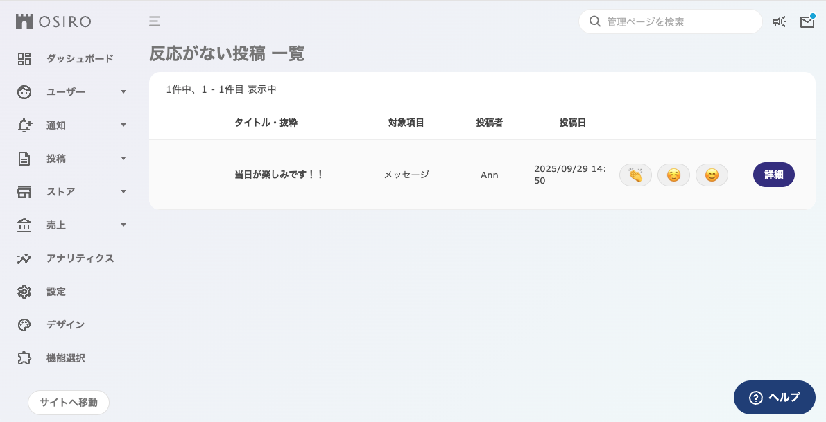 ダッシュボードで表示される「反応がない投稿」一覧からリアクションスタンプを送ることができるようになります。