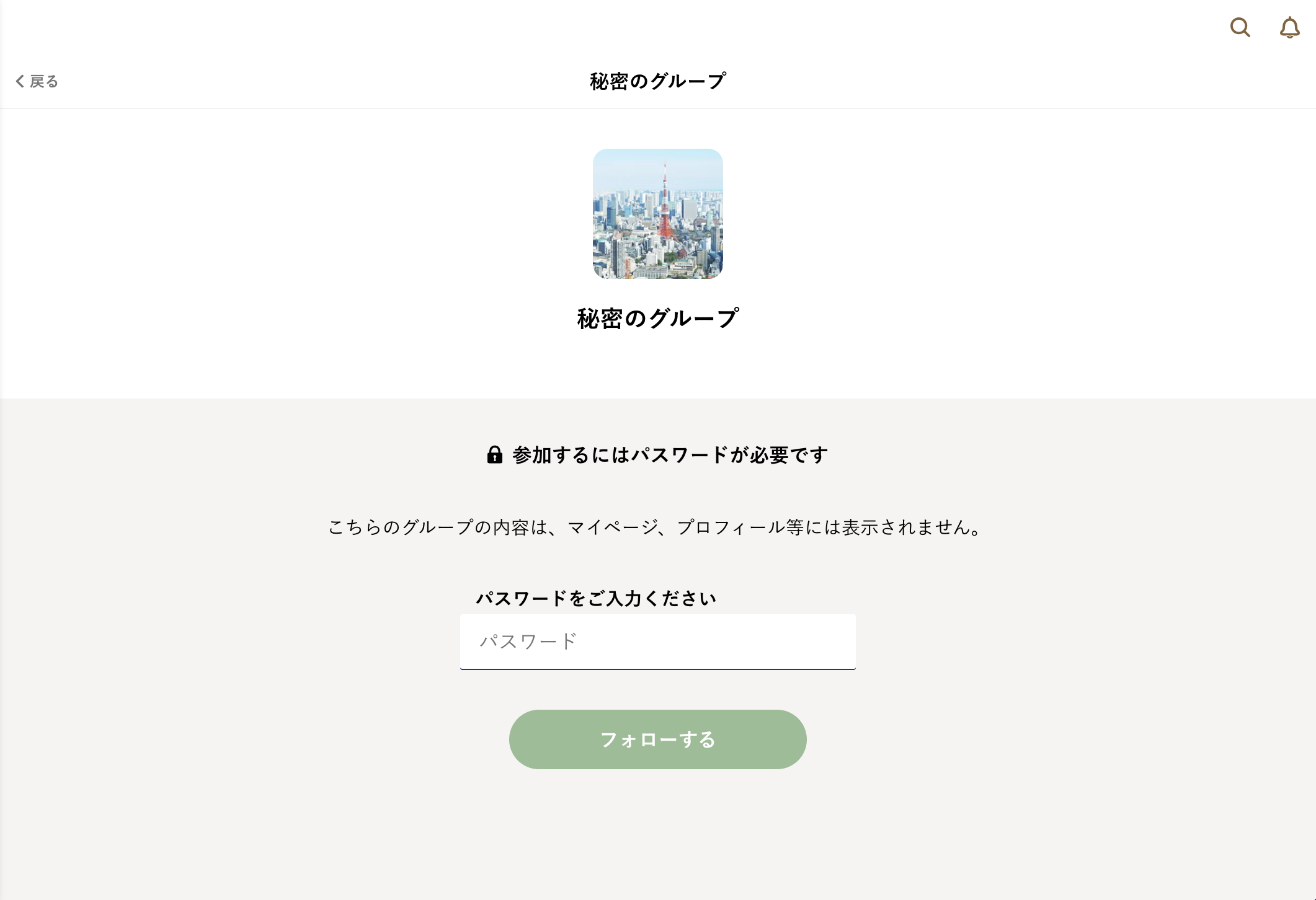 「秘密のグループ」とはグループにパスワードを設定し、パスワードを知っている人のみ閲覧・投稿ができるグループを作成できる機能です。