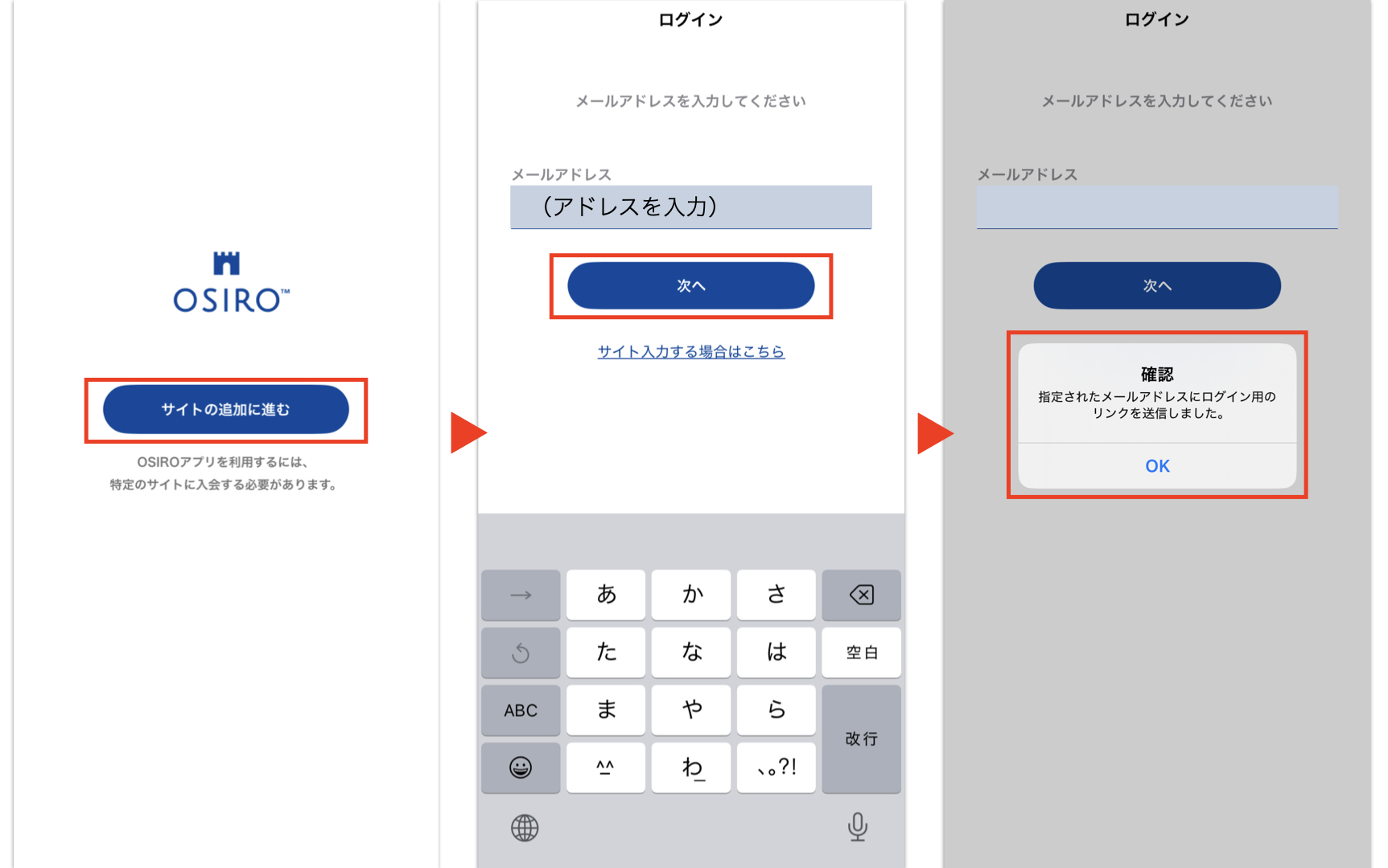 - 「【OSIRO】iOSアプリログイン」というタイトルのメールを開き、ログインしたいコミュニティのタイトルの下に表示されたリンクをクリックする