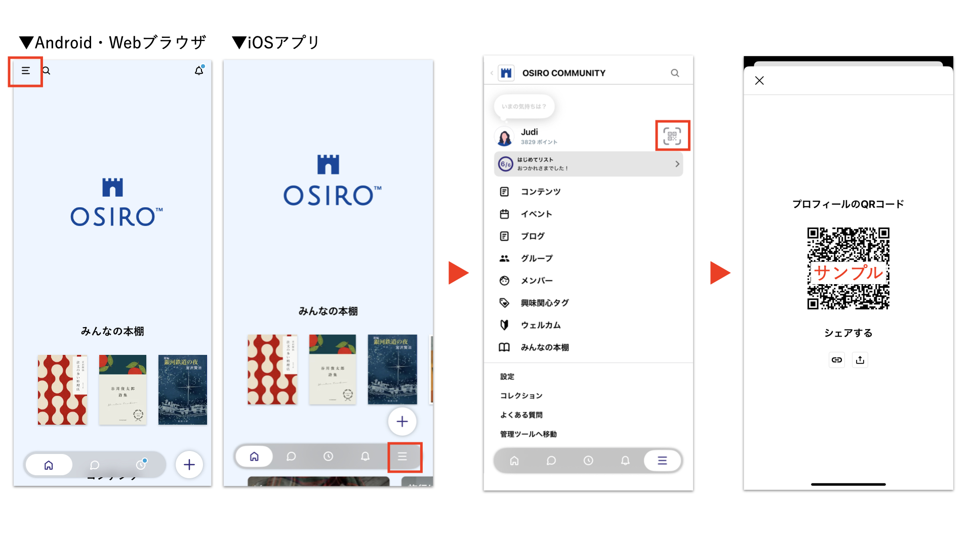 各メンバーのプロフィールにQRコードが発行され、QRコードを読み取ることで相手のプロフィールを開くことができるようになります。